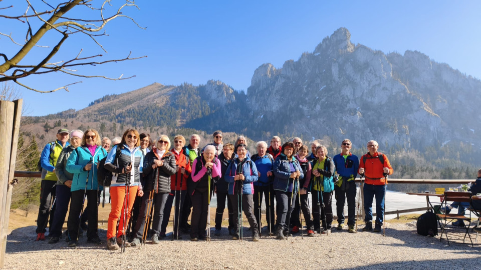 Unsere 6. und letzte Wintergenusswanderung fühte uns vom Parkplatz Franzl im Holz über die Wamering zum noch zugefrorenen Laudachsee. Dort erwartete uns freundlicherweise der Wirt auf seiner Sonnenterasse mit wunderbaren gebackenen Hühnerschnitzerl oder Kasspätzle. Nach einer ausgiebigen Pause traten wir bester Laune den Rückweg an. Viele von uns machten noch einen Einkehrschwung beim Gasthaus Hain.